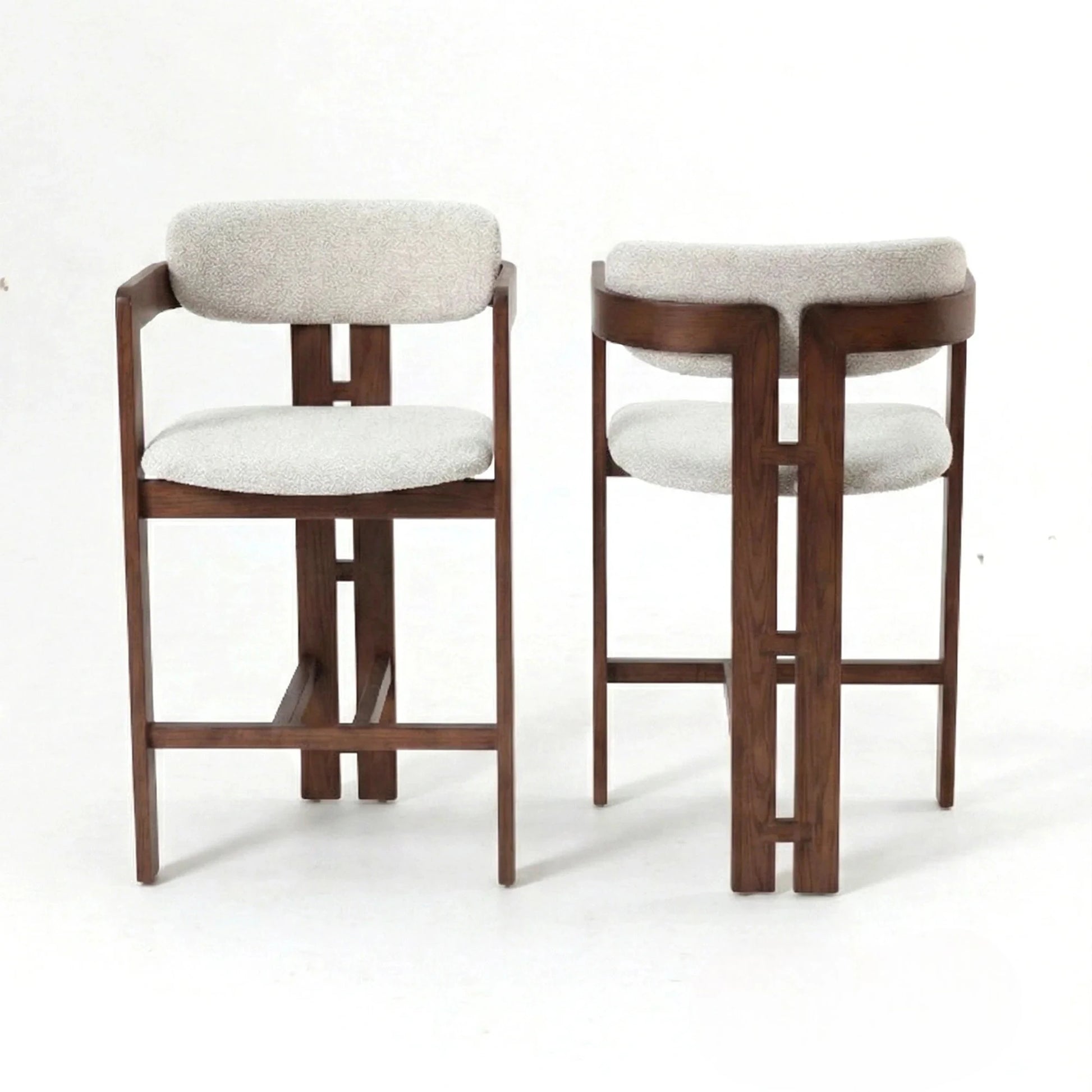 Clara Walnut Bar Stool in Oatmeal Bouclé with Soft Contours