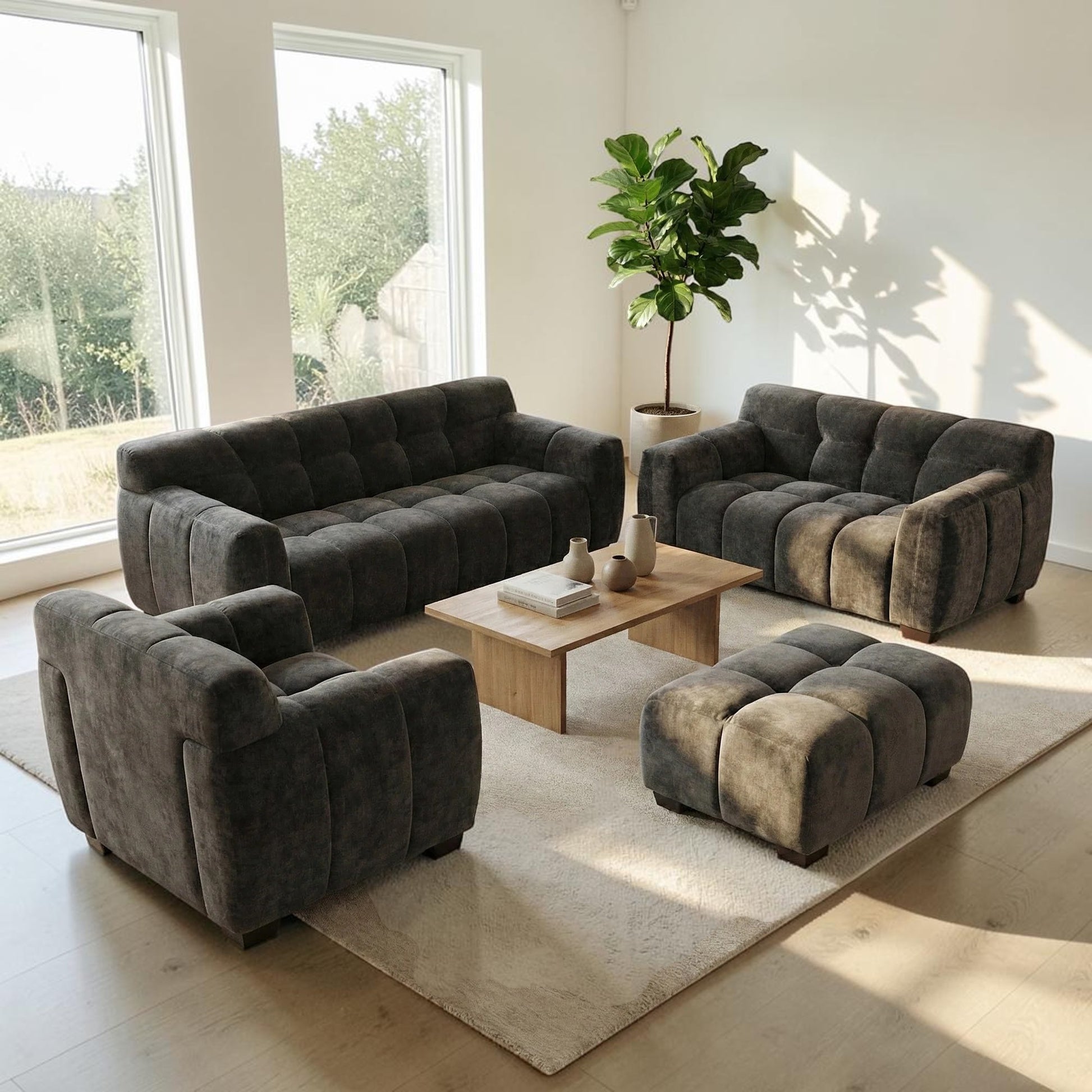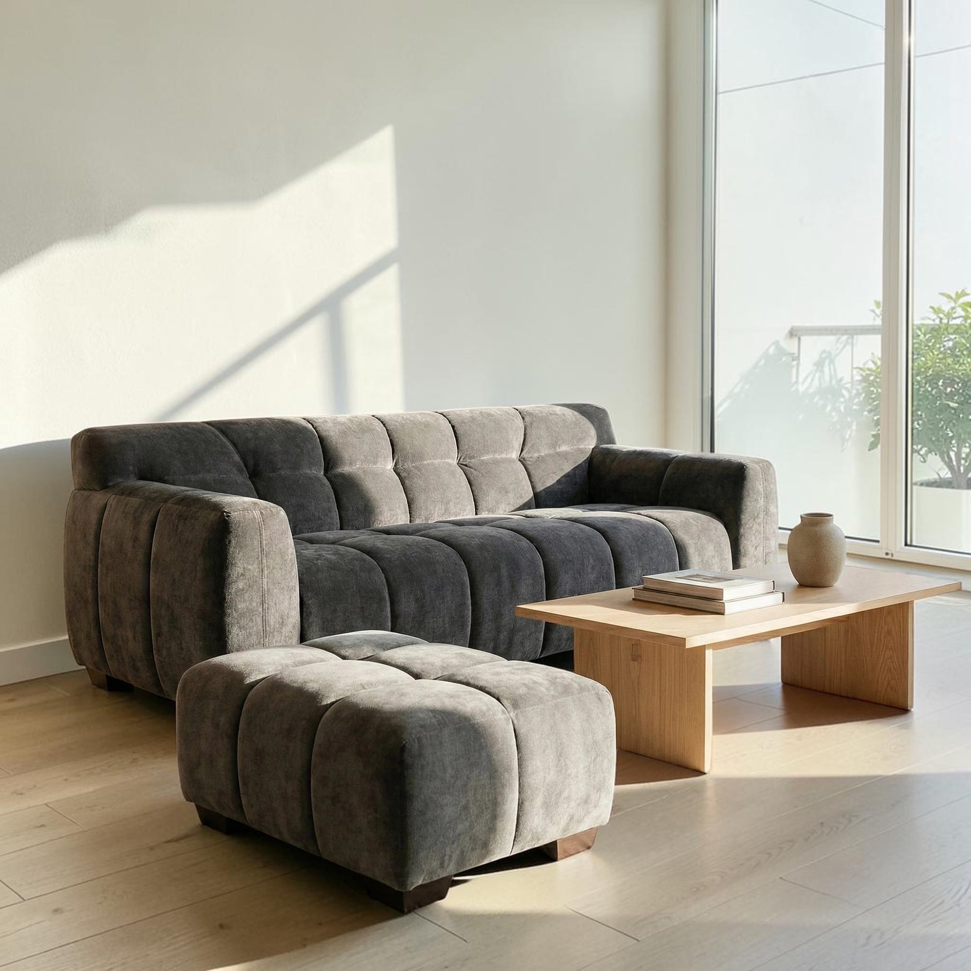 The ALUXO Harlem Modular Footstool blends deep comfort with dramatic elegance. Upholstered in a rich Cocoa Chocolate Mermaid Velvet, the soft-touch fabric reflects light for a shimmering, modern finish. Its signature deep channel stitching adds sculptural texture, making this footstool a visually captivating addition to any contemporary living space.