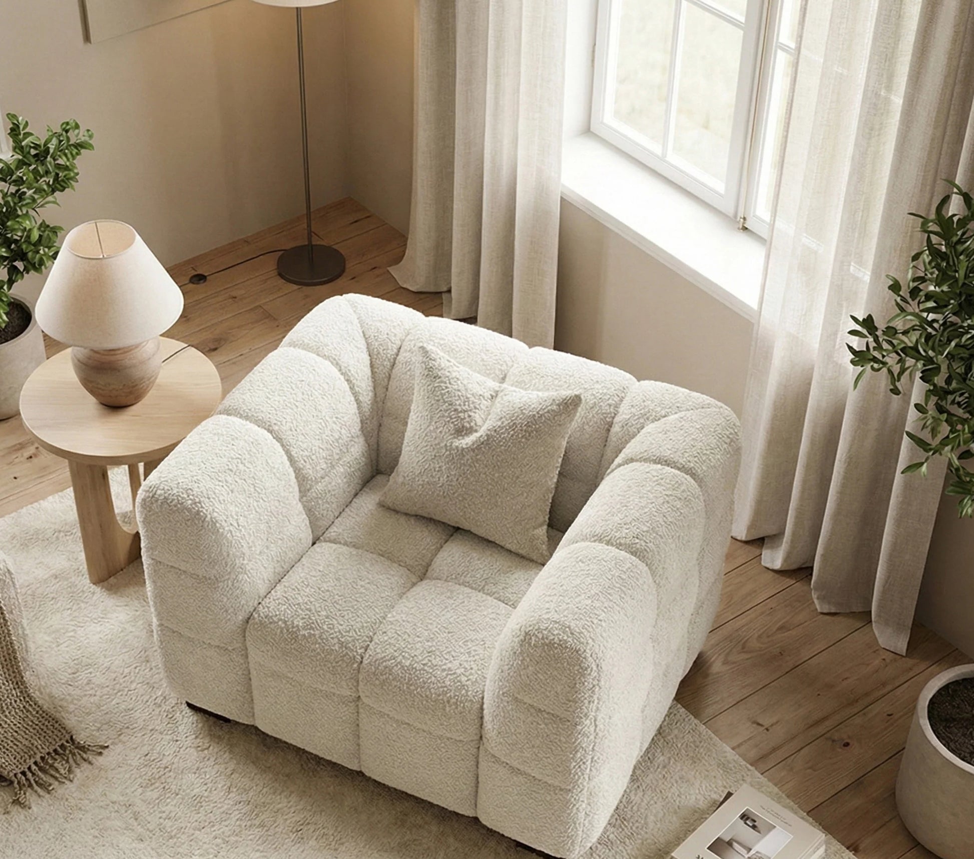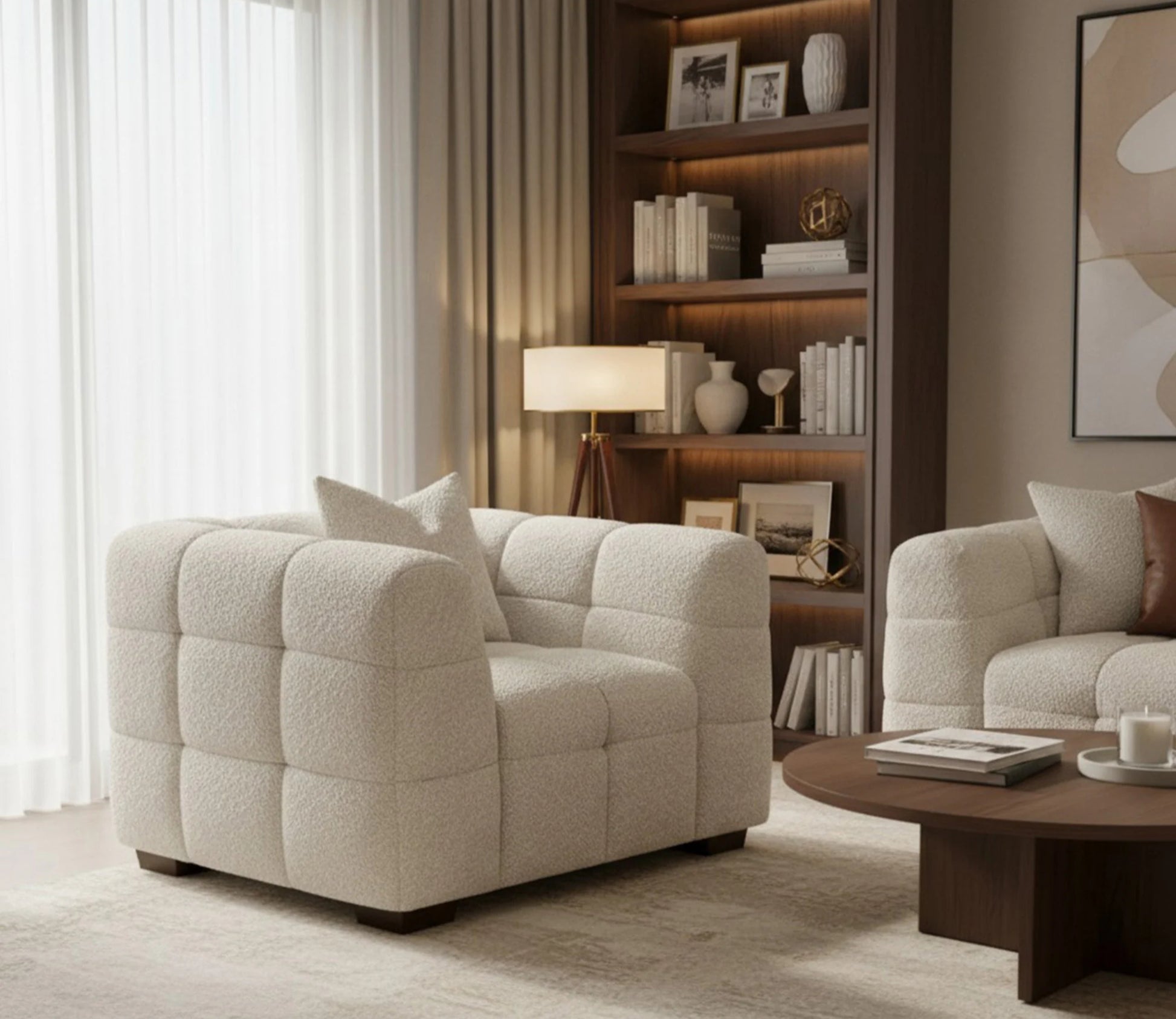 Sculptural Sophistication: The Tribeca Armchair in Pearl Bouclé