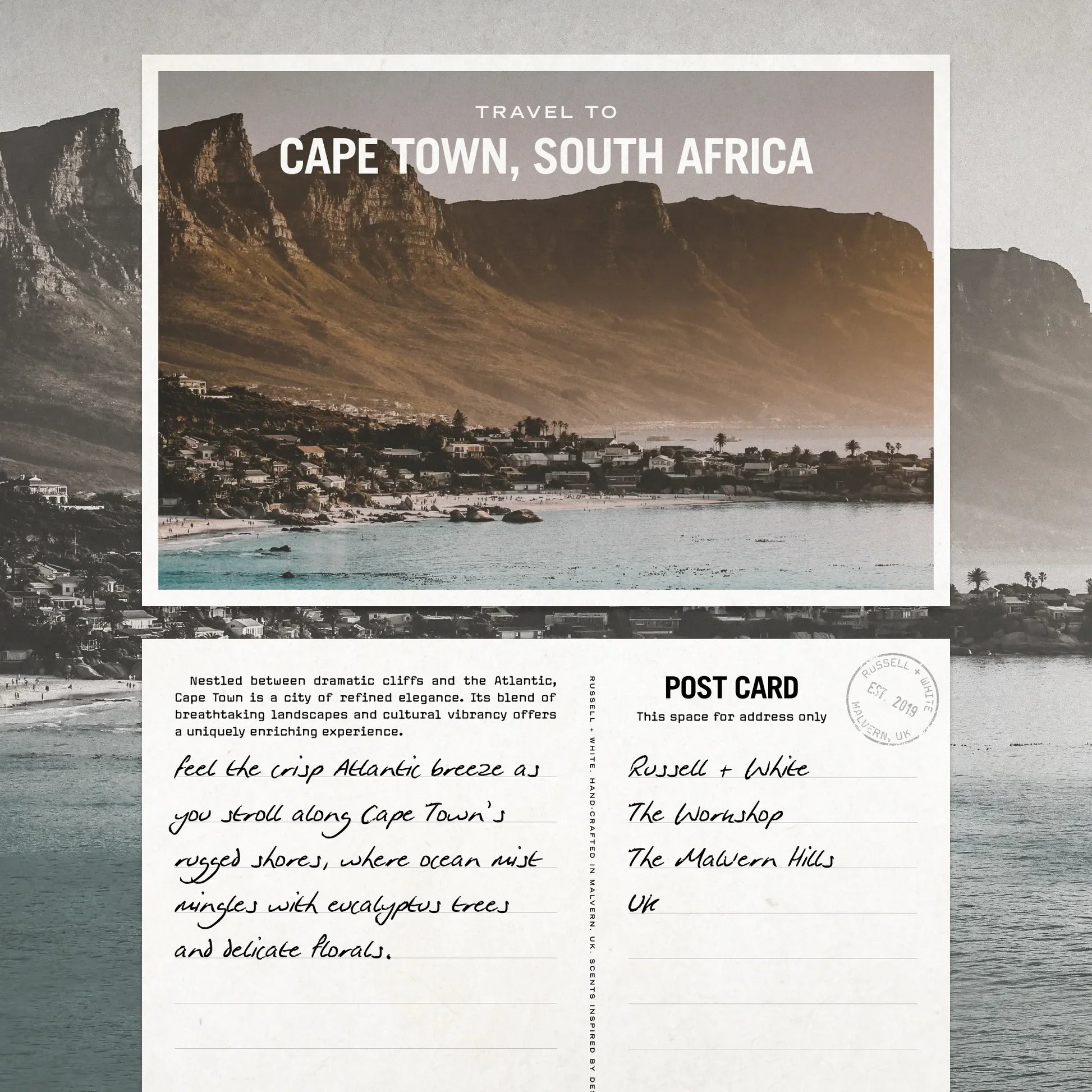 Feel the crisp Atlantic breeze as you stroll along Cape Town’s rugged shores, where ocean mist mingles with eucalyptus trees and delicate florals.