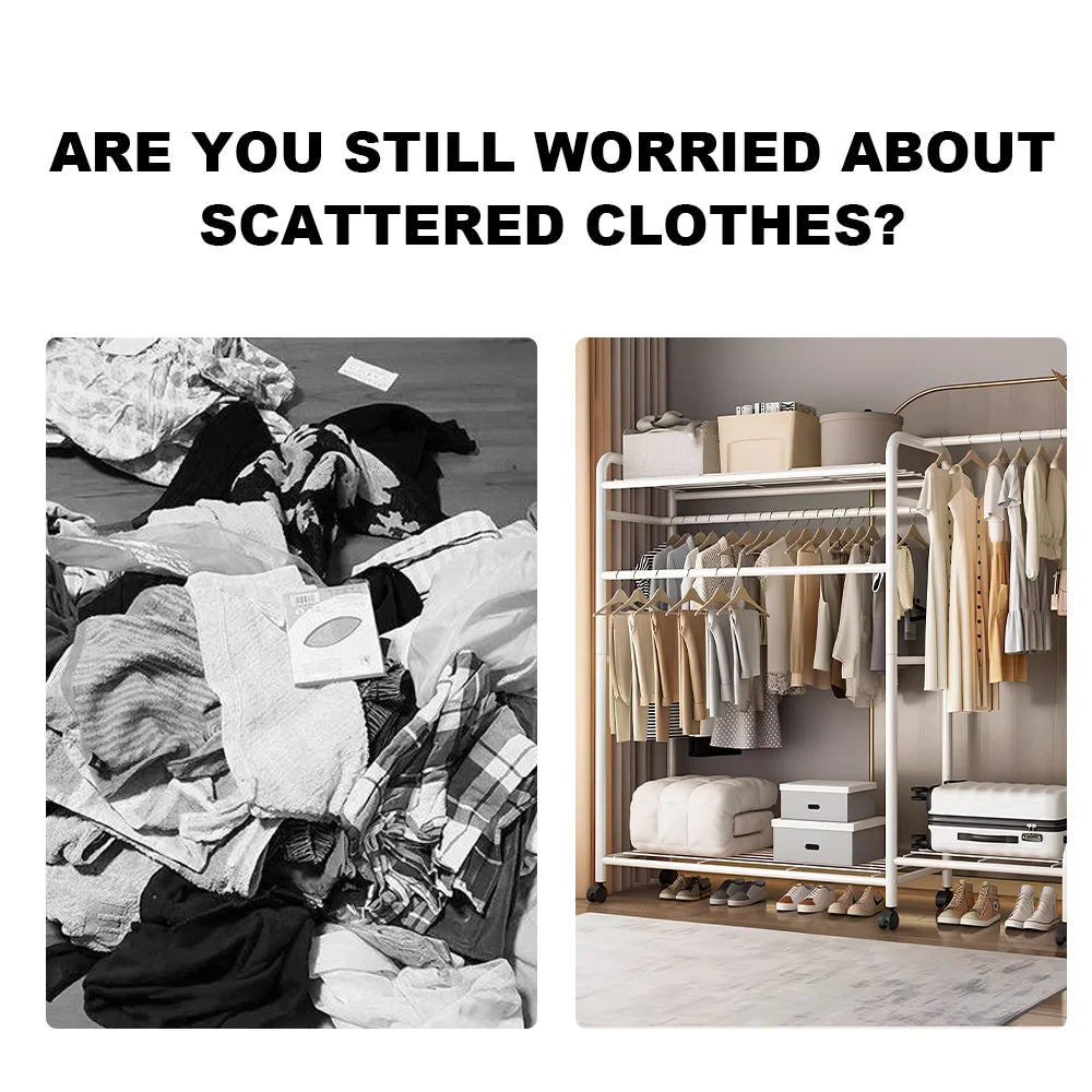 🧥 Movable Double-Tier Coat Rack - Ultimate Floor-Standing Clothes Storage