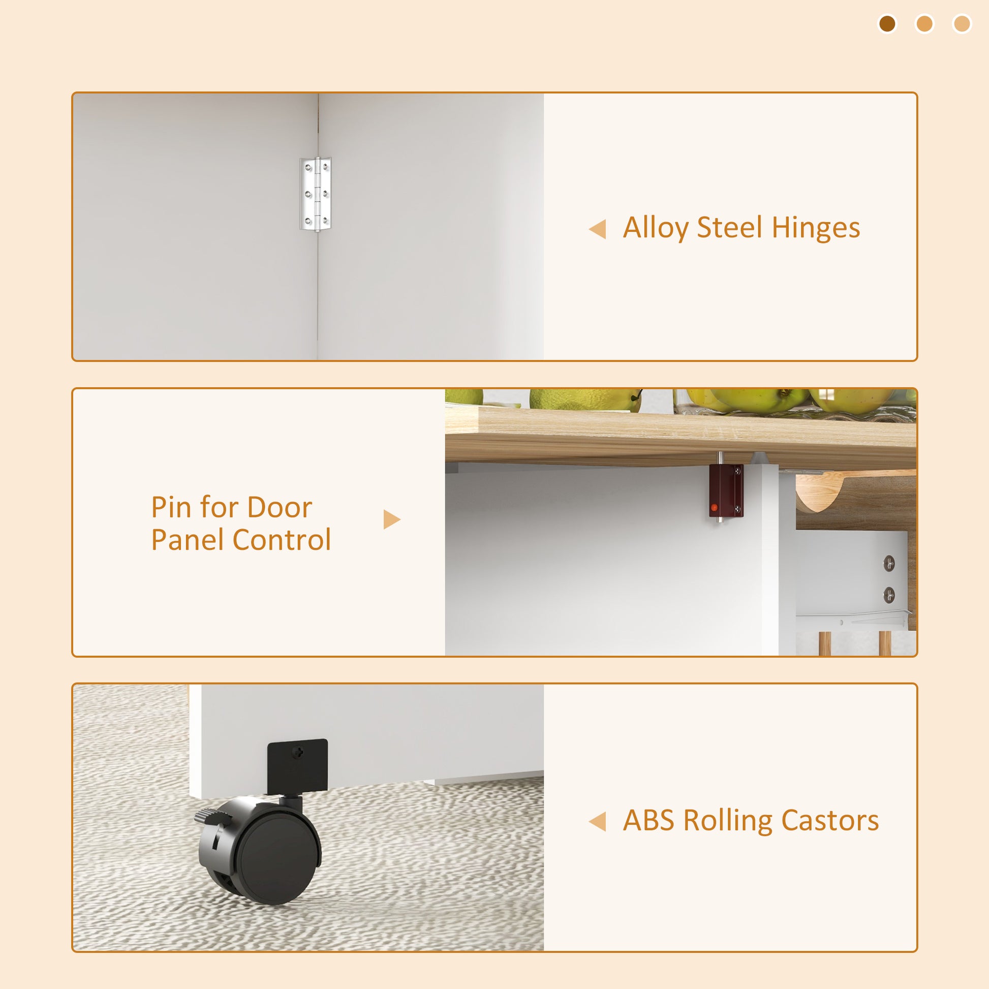 ● Built-in a drawer with steel slides and two shelves: storage for tableware, utensils and other dining accessories