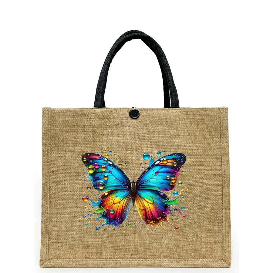 Women's Linen Flower Butterfly Elegant Square Buckle Tote Bag